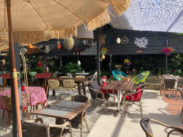 La terrasse fleurie, couverte pour sa majeure partie, vous accueille aussi bien à l'ombre qu'au soleil. Un coin lecture-jeux attend les enfants. Des plaids et des chapeaux de paille sont à votre disposition, ainsi que des coussins moelleux.